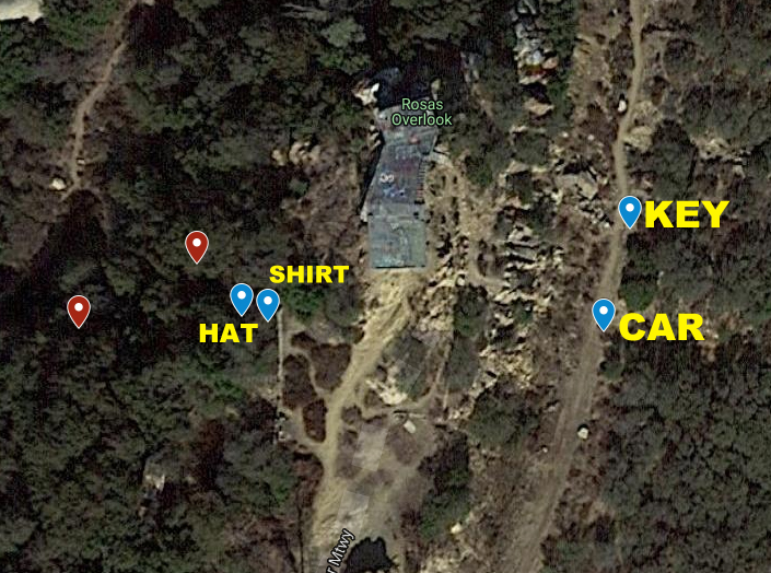 @wildcats821 do you know which aerial photo showed the hat? I was just looking at the drone photos and it looks like most of them are upside down in relation to the google map, which makes it a bit difficult to correspond the map pins to the pictures. Is the area I have marked on this photo where the hat & shirt were found? Are there more photos of this specific area?