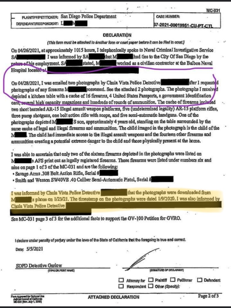 Pictures were taken on 1/9/2020. Downloaded on 1/23/2021.MOO the dates that the pictures LM took were time stamped on 1/9/21 and then downloaded on 1/23/21. Soooo a few days after Maya is missing LM takes multiple pictures of his guns and ammo with his 4 year old son surrounded by them? I highlighted that statement in yellow in the pic. It is from the news clip regarding the GVRO. View attachment 297002