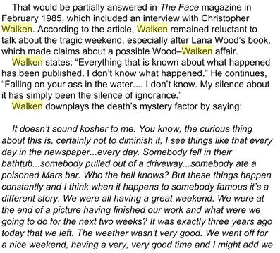 He had smashed a bottle of wine on board the yacht and asked Walken: “What are you trying to do, **** my wife?”