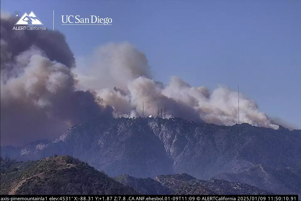 Ten deaths have been confirmed so far in the Los Angeles fires, which have been fanned by powerful winds.