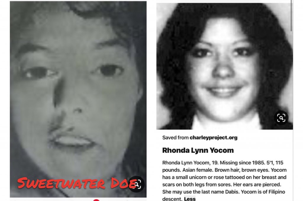 I was comparing Rhonda Yocom to Sweetwater Doe- tattoos match, body was discovered about 7 years after she disappeared. Appearances are very similar.