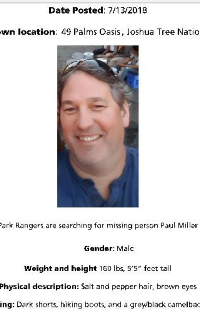 The news stories that say “he was last seen at 9am by his wife” are incorrect. Other reporting that says “he was last seen at 9am” is more accurate - that’s about when I saw him. To get where he was on the trail he probably left the trailhead 30 to 40 minutes before then - say 8.30. The drive in from 29 Palms might have been anything from 10 minutes to half an hour depending on where he was staying.