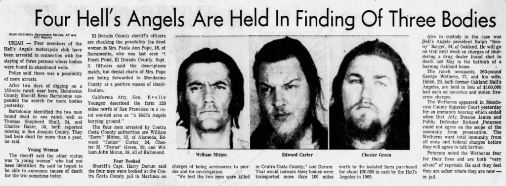 She apparently hitchhiked to the rock concert and then hitchhiked back with two people from Sacramento, where she lived. She decided to return to the campsite, although her companions wanted her to go to Sacramento with them. They last saw her talking to "motorcycle types."
