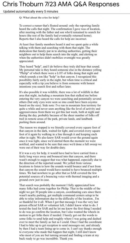 Hi @runspired I’m sure these are not all the questions various members have asked you concerning Philip’s disappearance, but as you suggested it may be easier for you to address some of them if they’re in a compiled form.