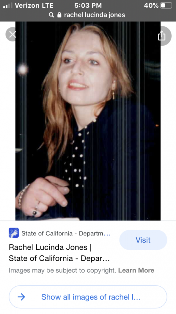 "I called the LAPD and talked to a detective last week and they said that there is no DNA or dental records on file for Rachel Lucinda Jones and that she had no family....The only info I could find for Rachel Jones was an address in Van Nuys, CA. Some of the people with the Jones last name at that address also had addresses in Oakland."