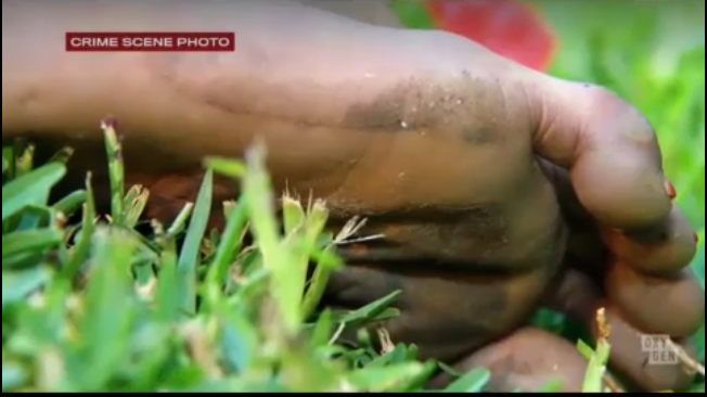 I also was struck by the picture of her foot, and rewound the video to see it again. I do think it's weird that there's such a distinct clean mark across such a dirty foot. What got my attention, also, was that her foot was SO dirty. Muddy, really. She had just taken a shower, and was in the house, which wouldn't have muddy floors. Someone might argue she took a shower, and then, naked, went outside to look for suicide "materials" she needed (super doubtful to me), but even if that were true, her last know position was her "tipoeing" (with feet bound? Seriously? But moving along...) to the window/balcony, and throwing herself over. But there was no mud deposited on the floor leading to the window, only disturbed dust (IIRC) leading to the window. My working theory: someone was waiting inside the house when she exited the shower (supposedly the back door was always left open), and then she screamed for help (heard by the neighbor), then maybe ran outside to escape, getting muddy feet in the process, possibly the head wound when she was caught outside, then she was carried (unconcious) back to the house, and the rest of the events/staging were enacted as she was carried through them like a mannequin. She was very short, and light, and would have been pretty easy to carry.Just seeing Rebecca's foot again, in Oxygen episode 3, reminded me that there is no way she hopped across the dirty floor of the balcony. You'd have to explain the clean section on the ball of her foot, in the shape of a piece of sports tape.