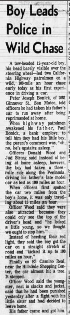 [h=3]Details of Disappearance[/h] Peter disappeared from his residence in the vicinity of the 2000 block of Ginnever Street in San Mateo, California during the morning hours of February 22, 1970. He was later seen hitchhiking on State Route 92, possibly en route to Half Moon Bay, California. Two friends reported seeing him a month later at the Mayfair Market. He has never been heard from again. Peter was staying at a children's home and was on a weekend pass when he disappeared.