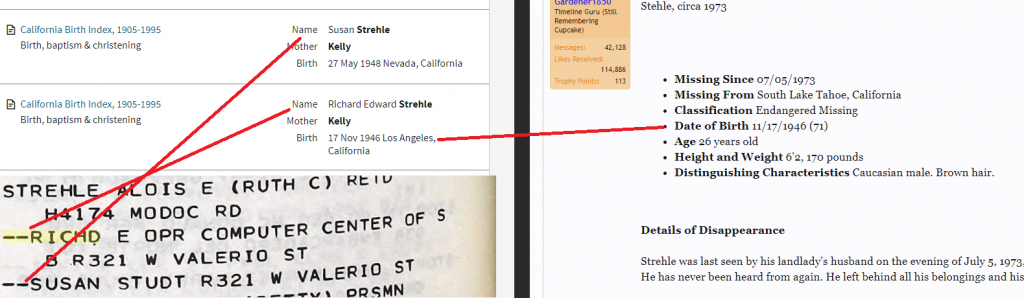 Strehle was last seen by his landlady's husband on the evening of July 5, 1973, near his studio apartment in the 1200 block of Judith Lane in South Lake Tahoe, California. He has never been heard from again. He left behind all his belongings and his three vehicles.