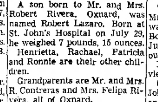 1940 - There is a Robert Riviera living @ 133 S Hayes, Oxnard. There is an age discrepancy of 4-5 years, but it is possibly the right guy.