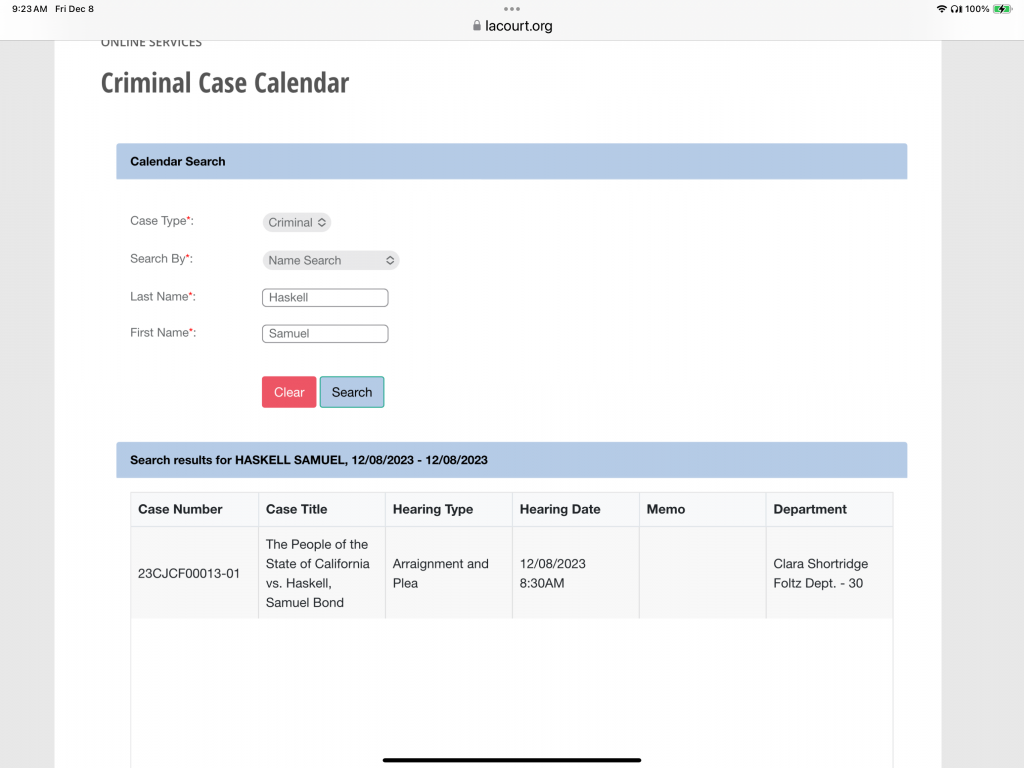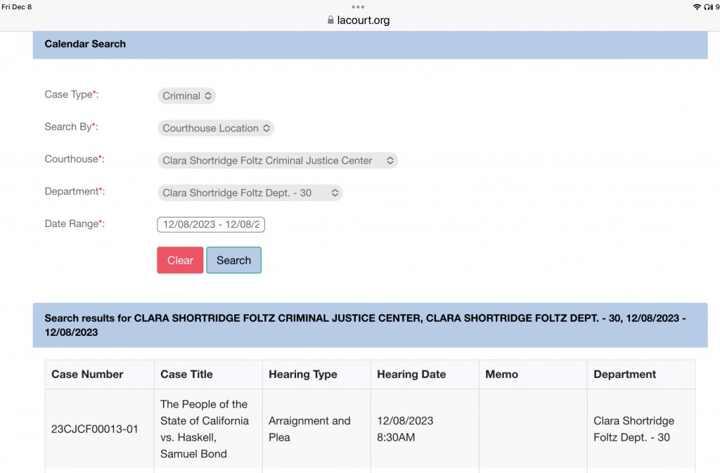Over prosecutors' objections, Samuel Bond Haskell's first public court appearance resulted in his arraignment being postponed until Jan. 12.