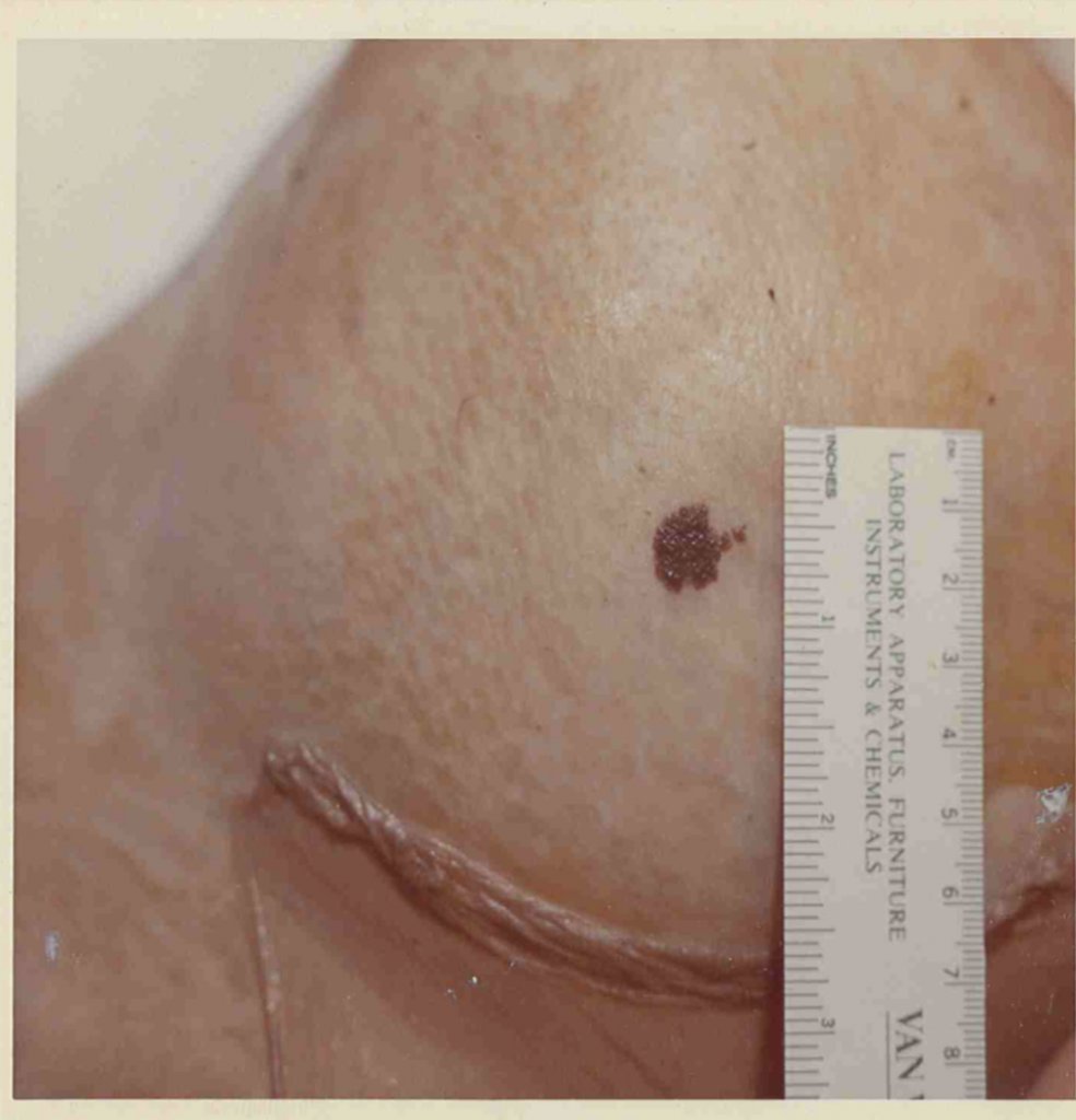 "There was a ½“ birthmark on her left outer thigh, similar to a mole. There were also two smallpox-type vaccination marks on her right shoulder and possibly a small round scar on her left cheek"