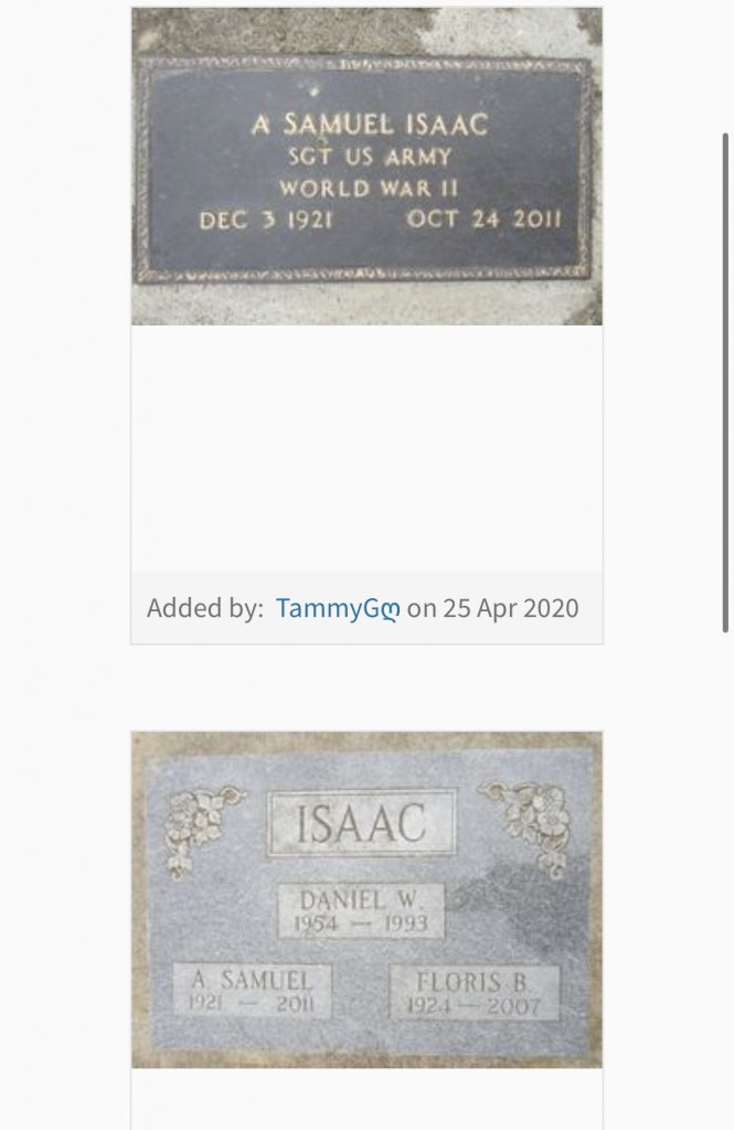 On the left deltoid region is an indistinct tattoo with the name "Cloris M. Isaac"