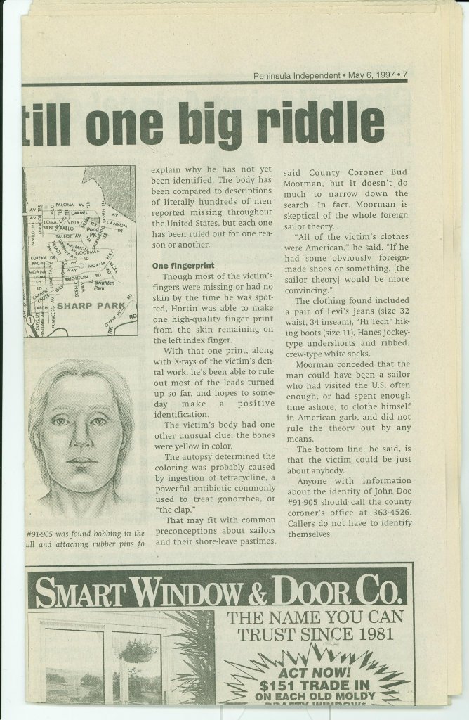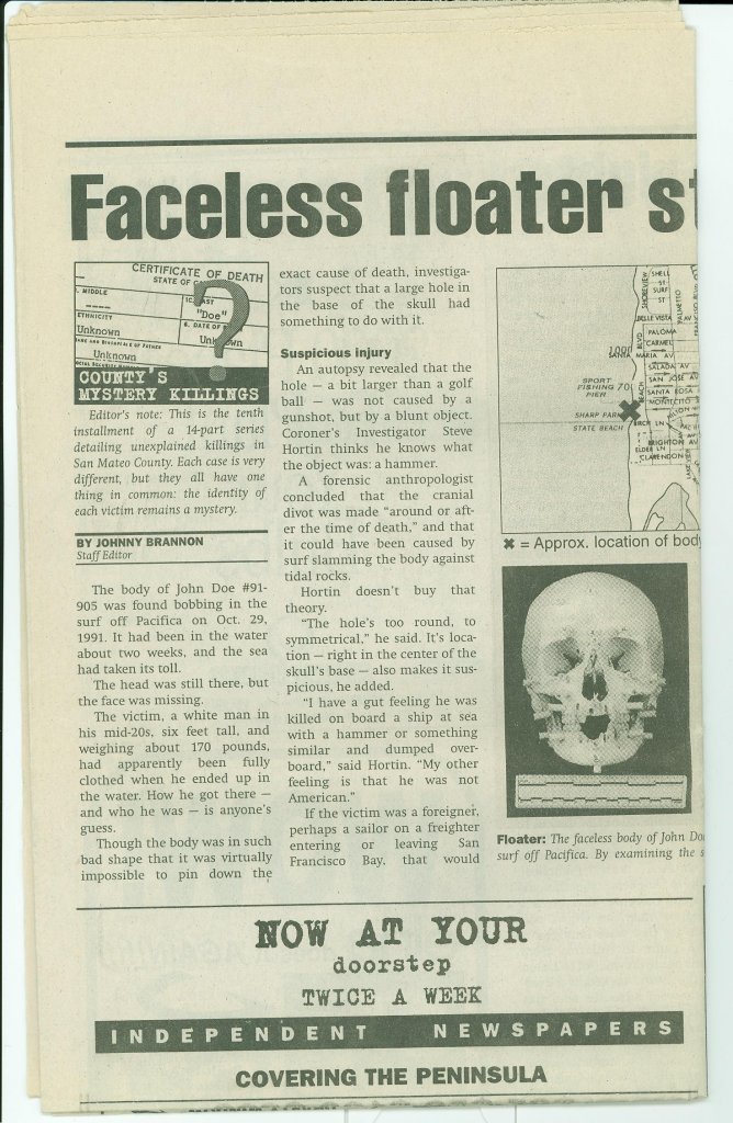- The victim was discovered on October 29, 1991 in San Mateo County, California