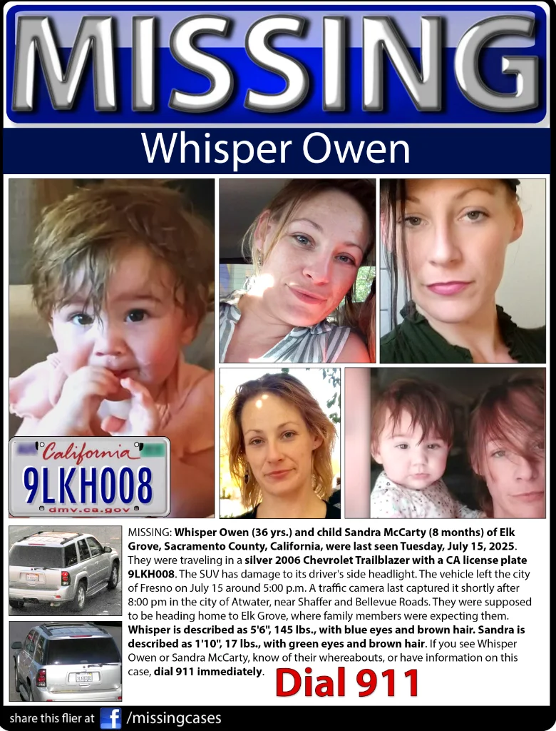 They left Fresno around 5pm on Tuesday to return to Elk Grove, where they live with Whisper's partner and their other two children.