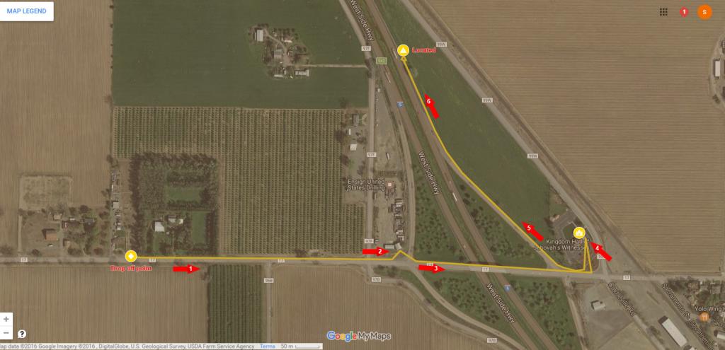 My understanding is that she was dropped off on 17 not far from some dark houses a bit west of the drilling company which I speculate is what she thought was a wrecking yard in the dark and in her disoriented state. When she was picked up she was North of the intersection on I-5, not South as your location 4 shows. She didn't know exactly where she was, but she somehow knew she was South of Redding. According to a family member she went North on the on ramp because she knew home was to the North and she ran, not just walked, to a streetlight on I-5 in an attempt to be more visible as she was trying to flag down vehicles.