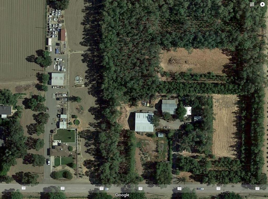 This is a satellite image of the drilling company on the west side of the Highway 17 overpass. This is what might be what KP and the VI referred to as a "junkyard".