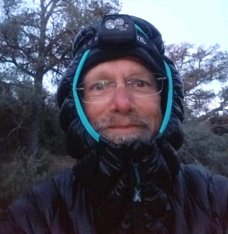 McGuire is 5’6” white male who is athletically built, and has black hair and a beard, both partially gray. In the picture attached, he is wearing a black puffy jacket, and believed to be carrying a green backpack and green tent.