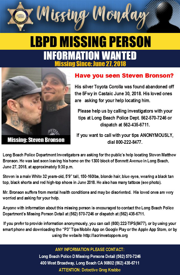 Steven was last seen on June 27, 2018, in Long Beach.