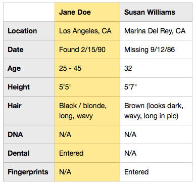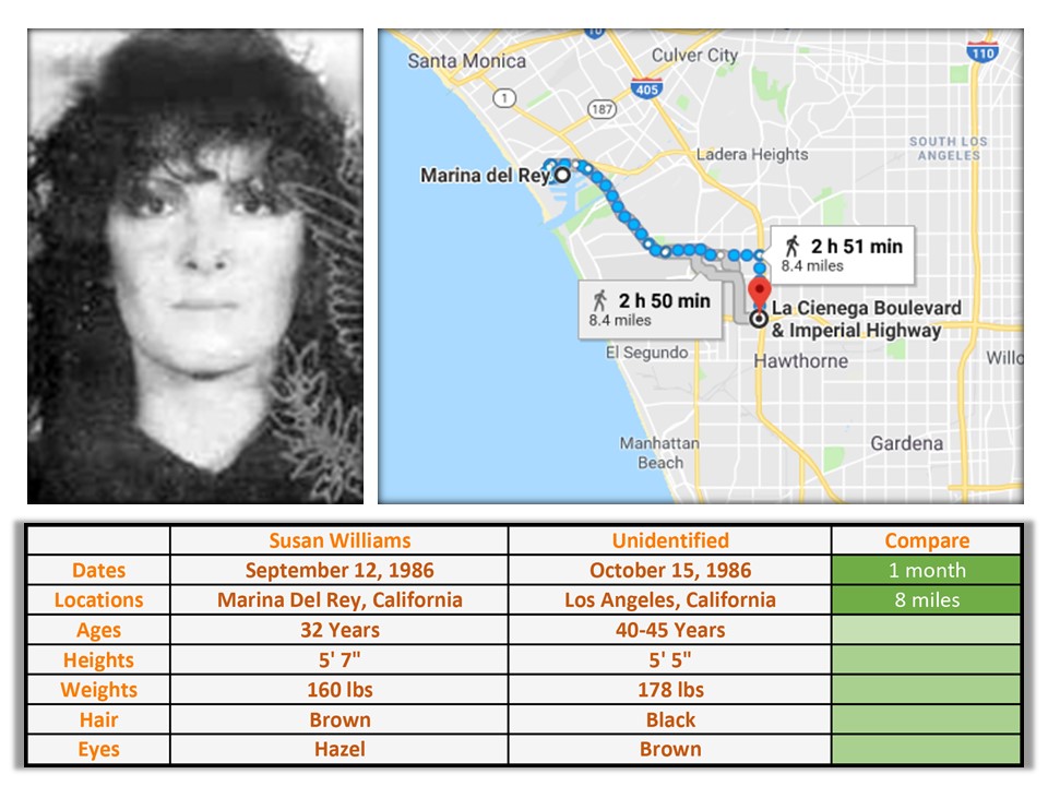 Williams was last seen on September 12, 1986 in Marina Del Rey, CA.