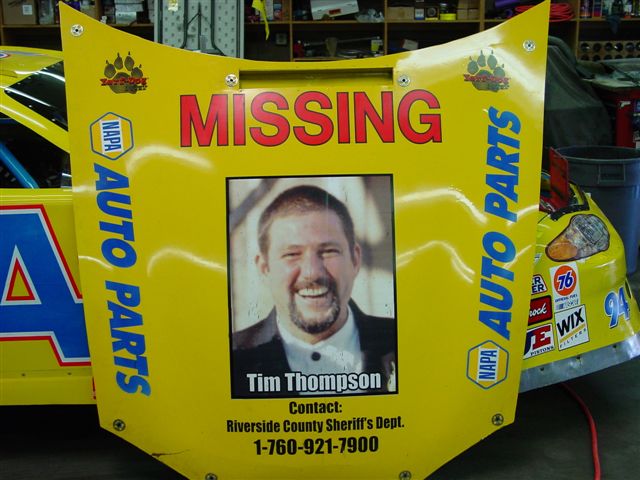 On September 23, six weeks after his disappearance, Thompson's car, a light golden-brown 1986 Buick Skylark, was found disabled in the middle of the desert, four miles off Highway 177 on Phelan Pass Road, seventeen miles north of Desert Center (Riverside County). There was no sign of Thompson in the vicinity. Authorities speculate he may have camped there for the night. A campsite was found about three miles east of the vehicle. At the site authorities located a full can of beer, Thompson's knife, and an unopened pack of cigarettes. There have been multiple searches in this area. Tim has a CDL license and used to live in Georgia.