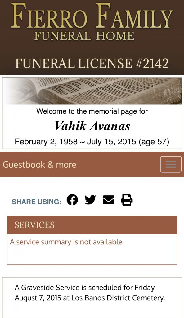 Avanas was last seen approximately 14 miles west of Los Baños on December 6, 2014. He was at the Romero Visitors Center on CA Hwy 152, where he abandoned the vehicle he was traveling in, leaving behind his wallet, his medication, and all his belongings. Few details are available regarding Avanas' disappearance and his whereabouts remain unknown.