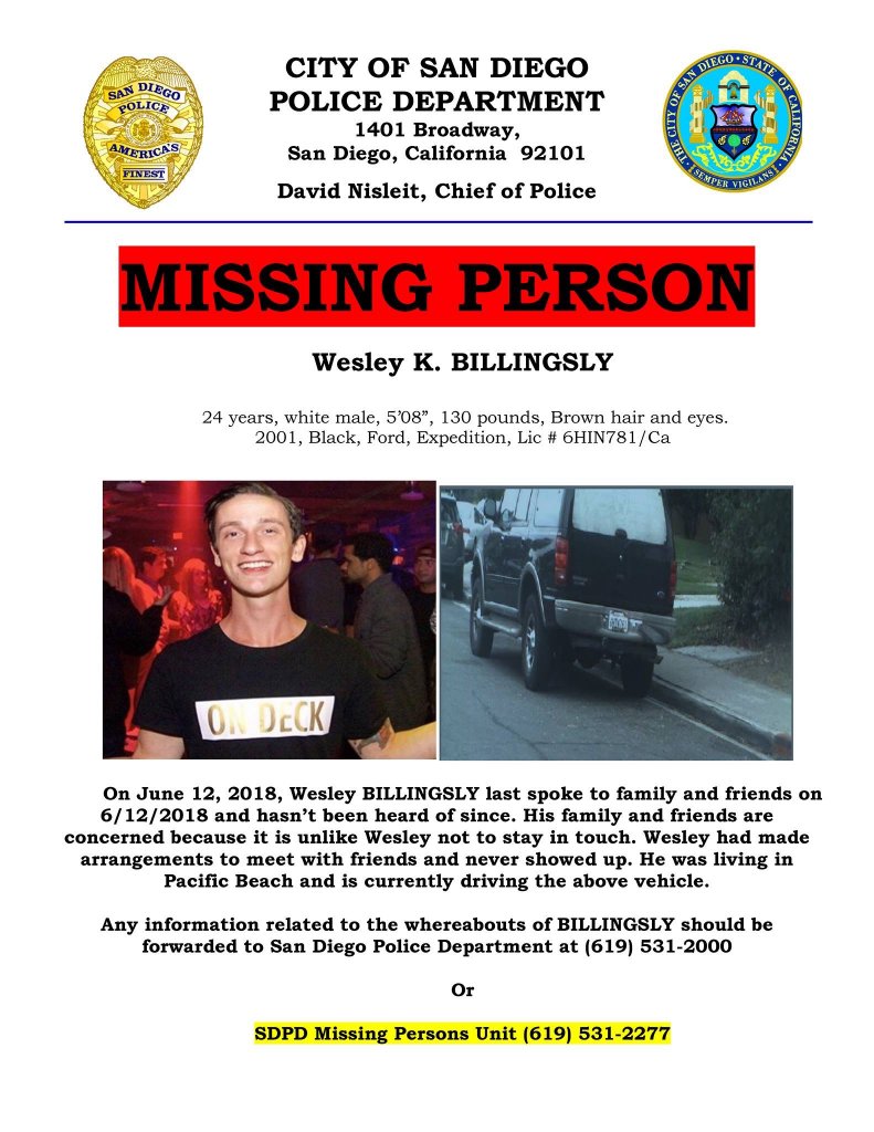 **Missing Person*** Have you seen Wesley Billingsly? Anyone with information please call SDPD Missing Persons Unit at 619-531-2277
