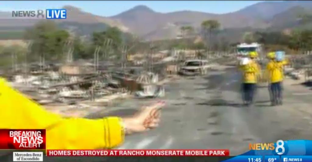 Compliments crews since yesterday. Firefighters putting out hot spots. In Bonsall, less smoke from hot spots, rising straight up. Firefighters pacing, getting rest, hydration, nutrition part of being able to be safe. They train together, learned from 03 07 experience