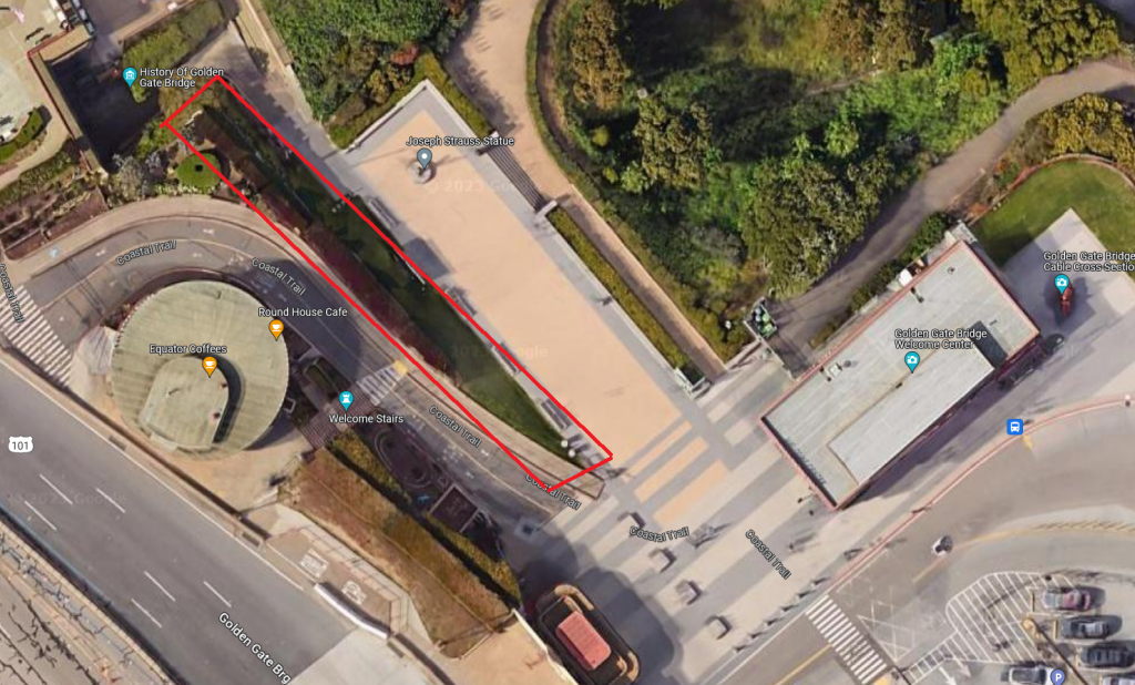 So I'm assuming that the grassy hill his brother is talking about is located here, marked in red.