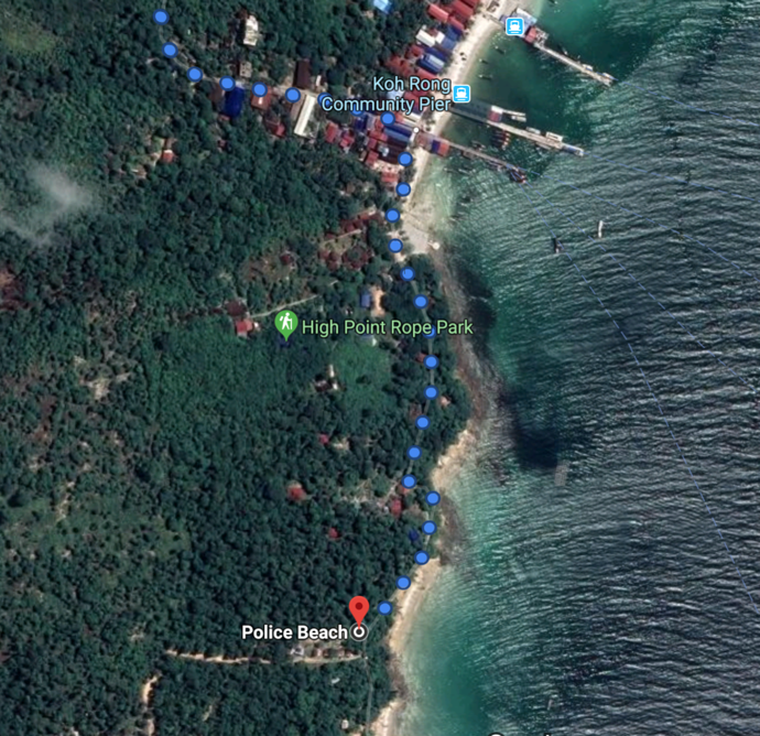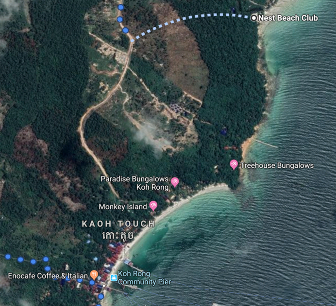 What about the nearby Koh Rong Community Pier beach, Monkey Island huts, or the Treehouse Bungalows beach? Can we get more information about which beach her backpack was found?