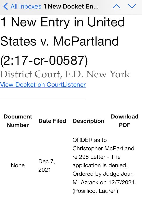 Here is Judge Azrack stating the McPartland's application to the court, for what you established above,