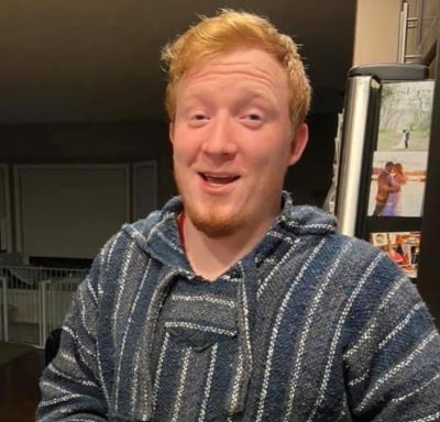 Hobbs was wearing a red and black Abbotsford Minor Hockey hoodie, a blue baseball cap, jeans, and grey leather zip-up boots. He is 5’8” tall, 180 pounds, with red hair and a goatee."
