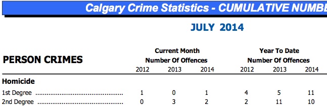 Perhaps the person that is responsible for updating the data is backed up. This Calgary crime map, from August 2014, shows two homicides in Parkhill.