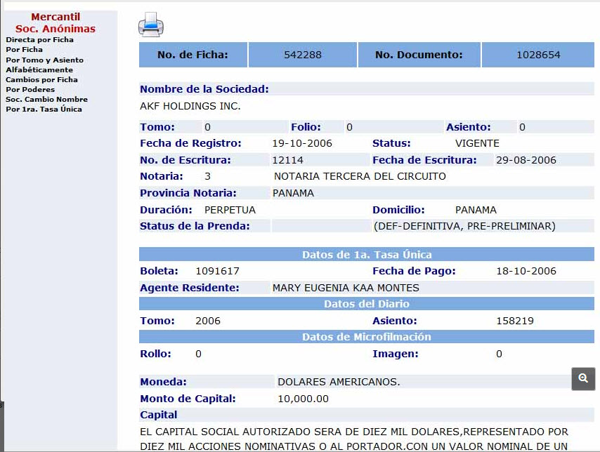 2006 October 19 AL’s company AKF Holdings Inc incorporated
