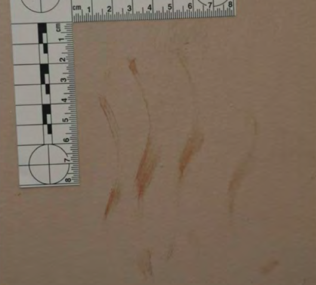 A bloody handprint with DNA from both Nathan O'Brien, 5, and his grandmother Kathy Liknes was found on a closet door about knee high from the floor. (Court exhibit )