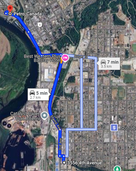 The Petro Can where Hall called the cab from is a 5 minute drive from United Cabs at 3556 4th Ave, Port Alberni, BC V9Y 4H4 where his cab was dispatched from.