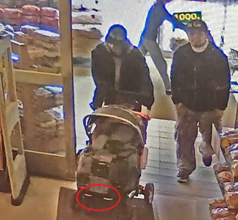 Earlier in the day, police released three photos of two people seen pushing a stroller: a man with a dark, short beard wearing a hat and dark hoodie, as well as a woman wearing a hat with shoulder length hair and a dark jacket. The surveillance photos were taken Monday.