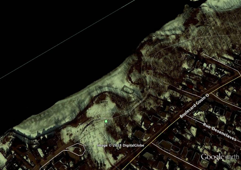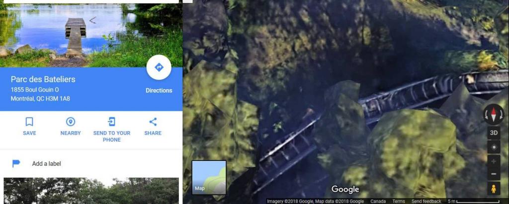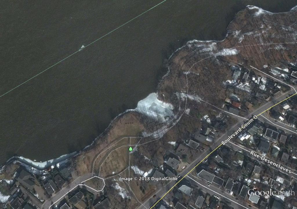 The way I interpret La Presse article is Ariel was captured by surveillance camera near the last house on the north side of Gouin Boulevard -- which is situated west of Bateliers Park. It is there, at Bateliers Park, where a woman (the witness) spoke to him.