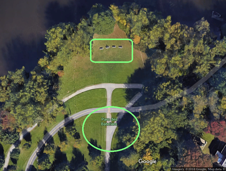 Parc des Bateliers IS "near" the waterfont. They still would have needed to walk on wet and slippery snow in order to cross paths "at" the waterfront. JMO