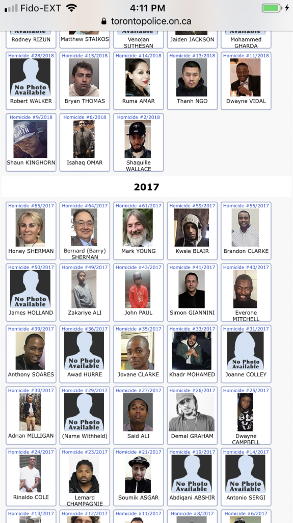 Toronto Homicide Victim List 2017 | Homicide Canada