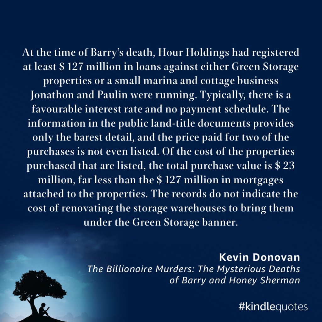 My guess is that’s what lead Donovan to investigate Green storage more closely and discover the large mortgages attached to them financed by Hour Holdings-which BS funded.