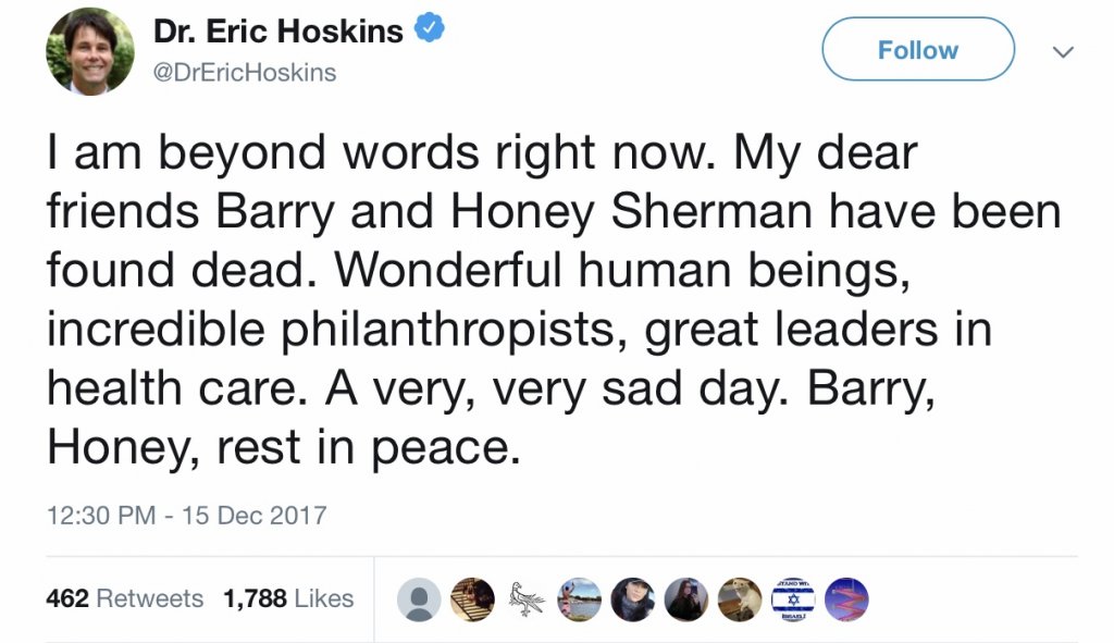 The Sherman family, including Barry and Honey’s four adult children, were informed over the next few hours.