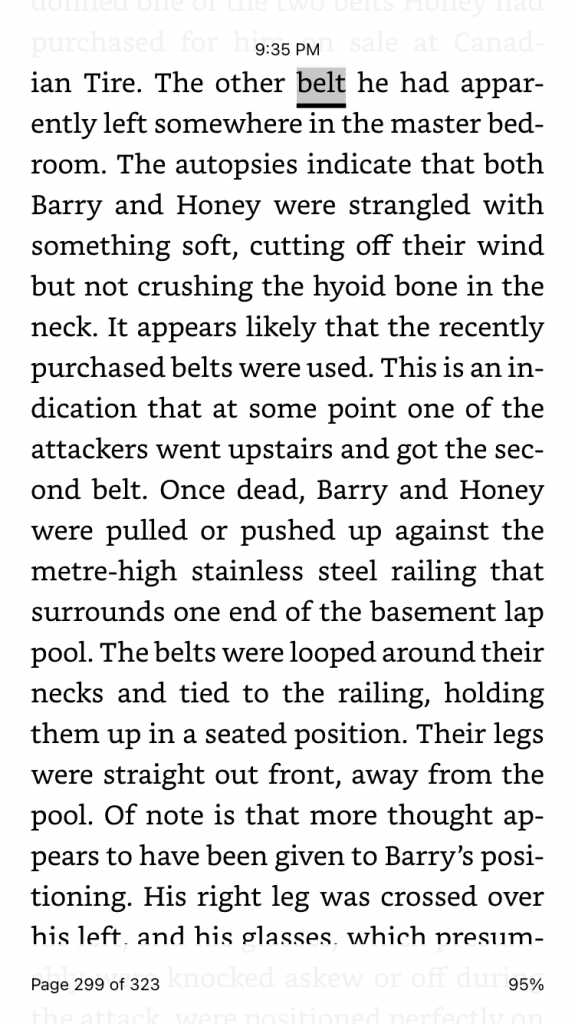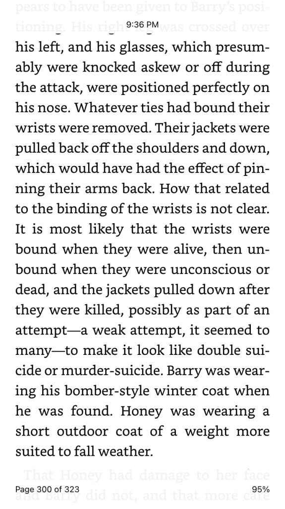 I think our VI, KW knows a few details regarding what was staged to make the deaths appear m/s. Didn’t he tell us about a video, Barry allegedly forgetting to shut down the home security system or something like that? Was that the same video given to CBC, I don’t recall other than he claimed a producer was being given some sort of proof of m/s as well. Aside from the repositioning of the bodies, other fabricated evidence such as that would’ve supported what initially appeared a domestic m/s.