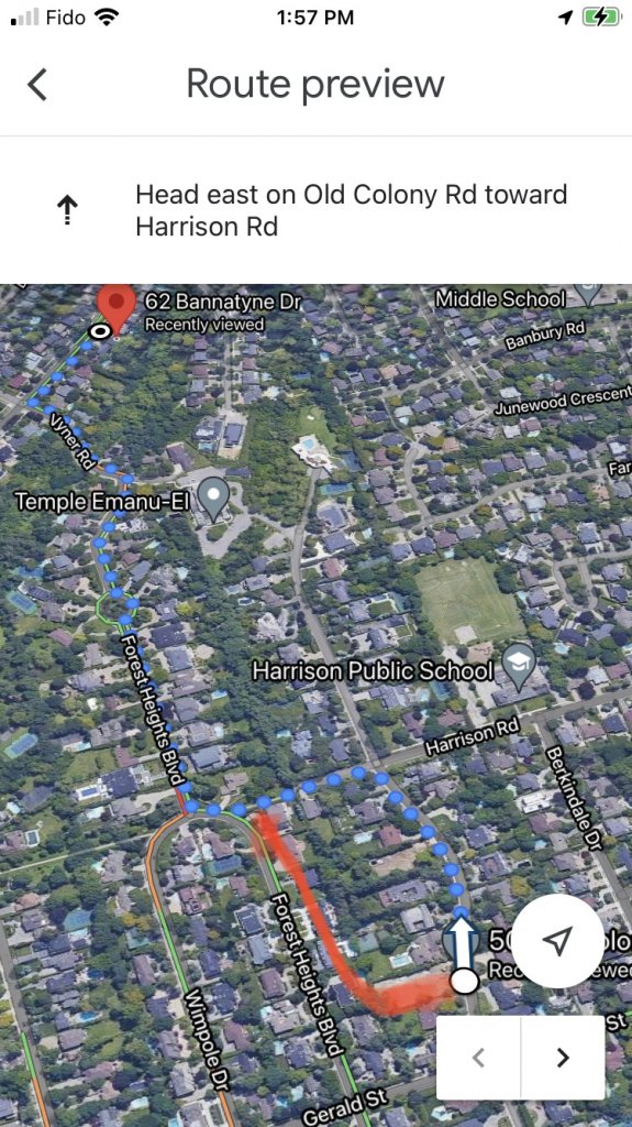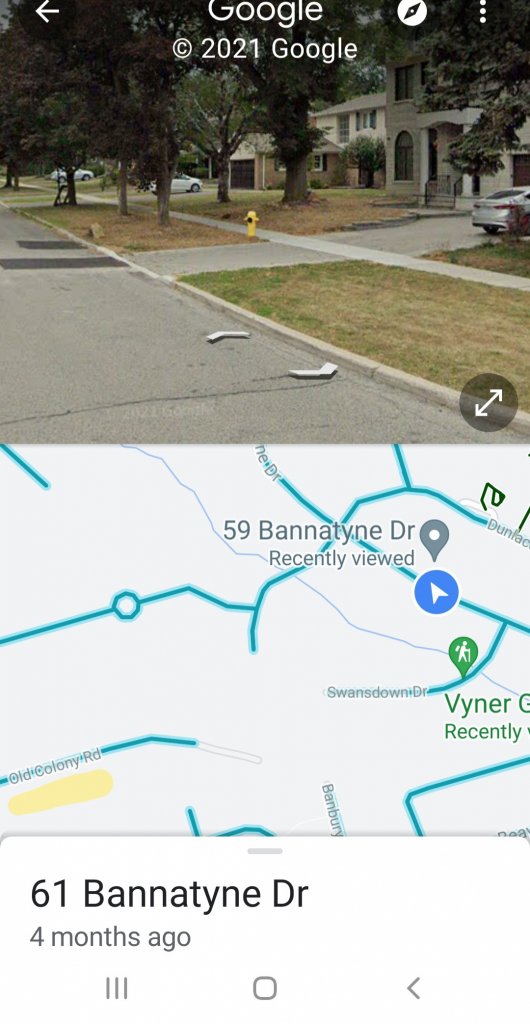 ah so I am backward, when I look at the overview map of the area's streets I see Vyner is north of the non-residential/park, hiking trails area that we are considering "he" did not take as a cut through and it is north of the camera at 62 B. I did not get on the "road" like you did. Thank you for the correction of my direction and accuracy. i am going to try what you did sounds interesting.