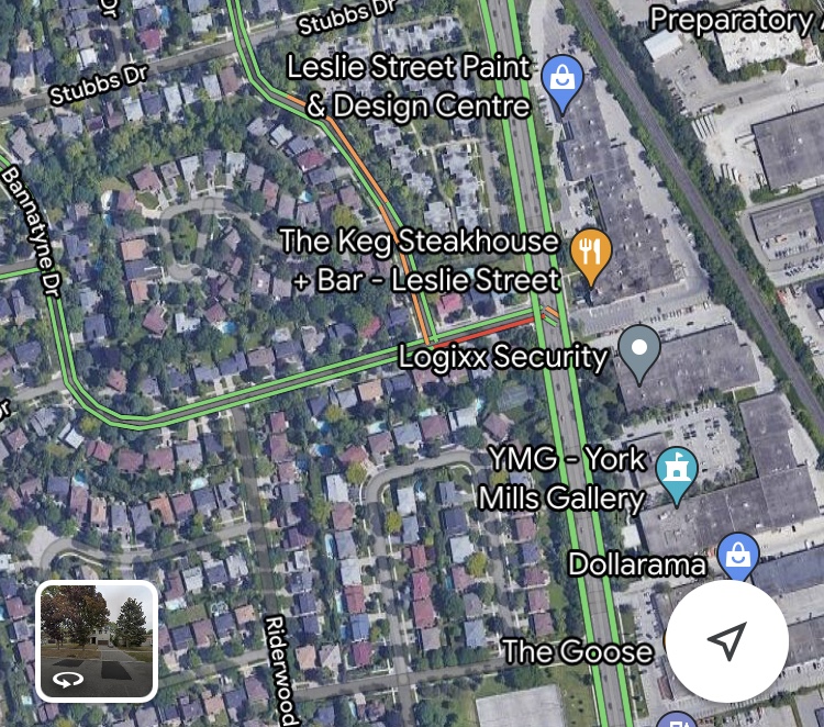 Where Old Colony meets Bayview, it’s mainly private homes on Bayview. If he was walking down Bannatyne to Leslie, there are a lot of commercial properties on the east side of Leslie where he could be either picked up or had a car waiting, imo.