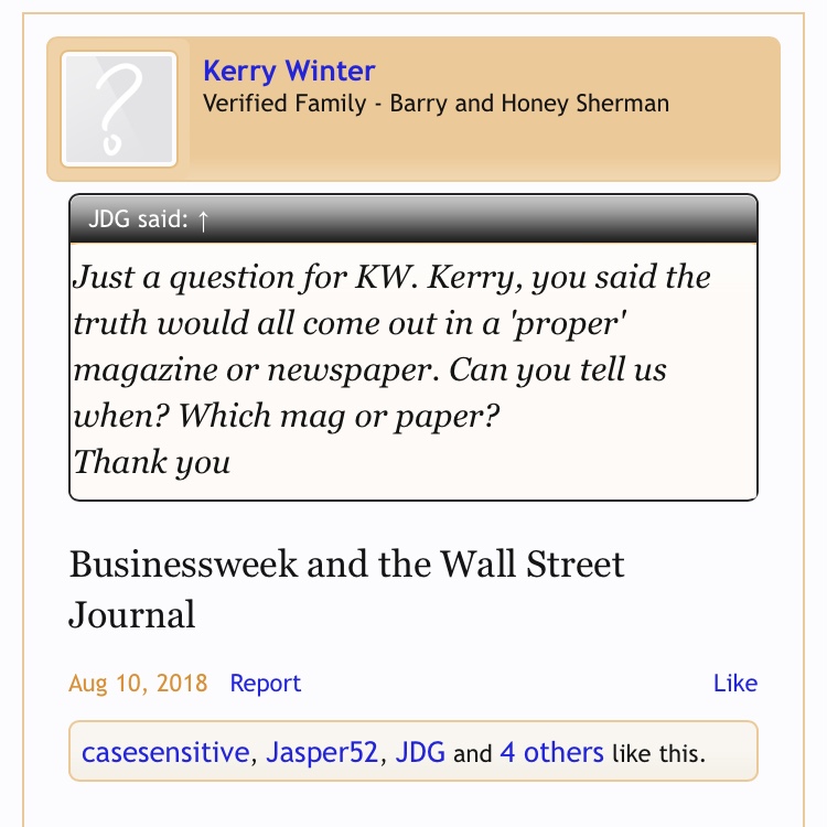 ETA: You mentioned the Bloomberg article. I’m going to dig up the quote, but KW told us here that he spoke extensively with Bloomberg and I think he was expecting his version of the story to be told uninterrupted or an exposé (imo). Instead the focus was Barry, Honey, those that loved them, a few paragraphs about KW, and the investigation.