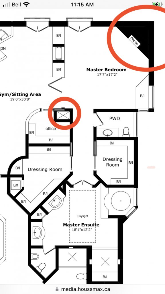 Could the circled areas be where possible safes could have been? (If they had any?) And also noting the dumb waiter went to the top floor in what may have been Honey’s dressing room.