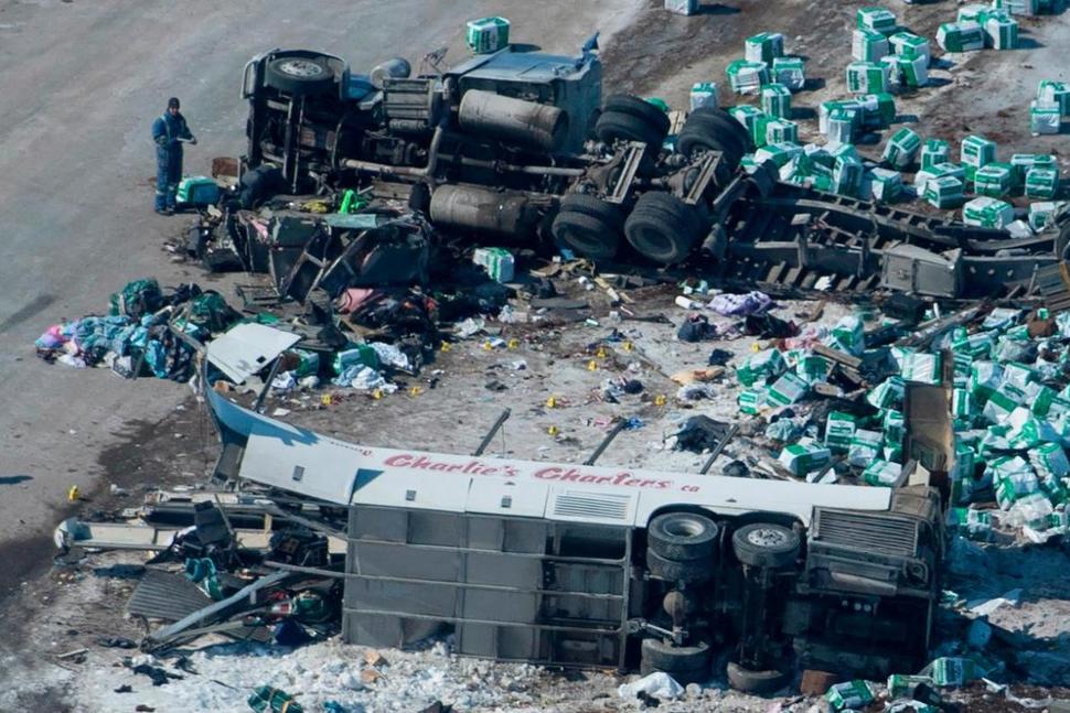 The driver of a truck that struck a bus carrying the Humboldt Broncos youth hockey team was uninjured in the crash that killed 14 people and injured 15 others.