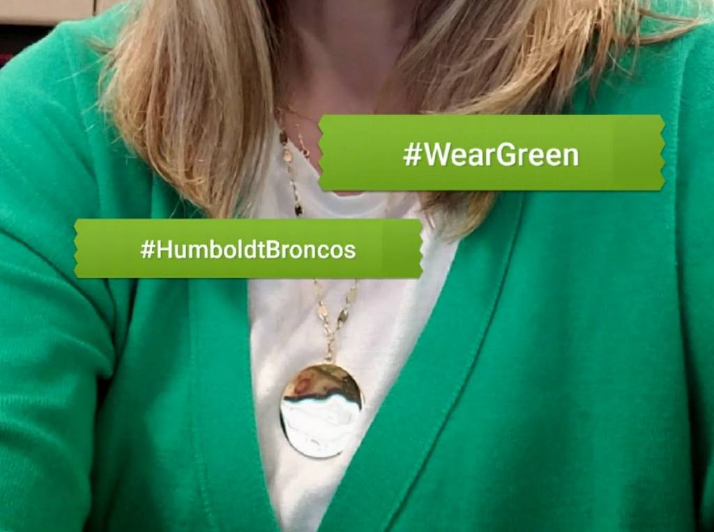 My heart is broken for the Humboldt Broncos family. The pain and sorrow seem unendurable. I am just so sorry. Wearing green at work today, showing my support and sending my love from the Gulf Coast of Alabama, USA.