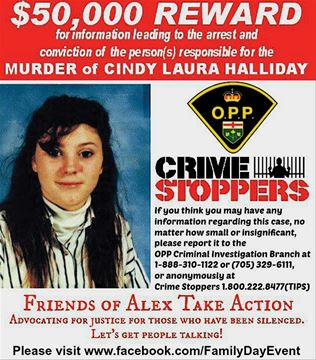 If Jackie slows down, she thinks about who isn't here: her daughter Cindy Halliday. Cindy's life was cut short by an unknown killer when she was just 17. And the person responsible for her murder is still at large today, 25 years later. The OPP will pay $50,000 for information leading to the arrest and conviction of the person(s) responsible.