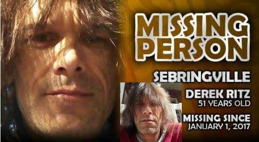 'Derek Ritz was last seen at a residence in Sebringville on Dec. 31, 2016, at around 1 a.m. Previous police reports said Ritz, then 51, was wearing blue jeans, a dark shirt and a dark leather motorcycle jacket when he was spotted in the Avonton Road area of Sebringville.'